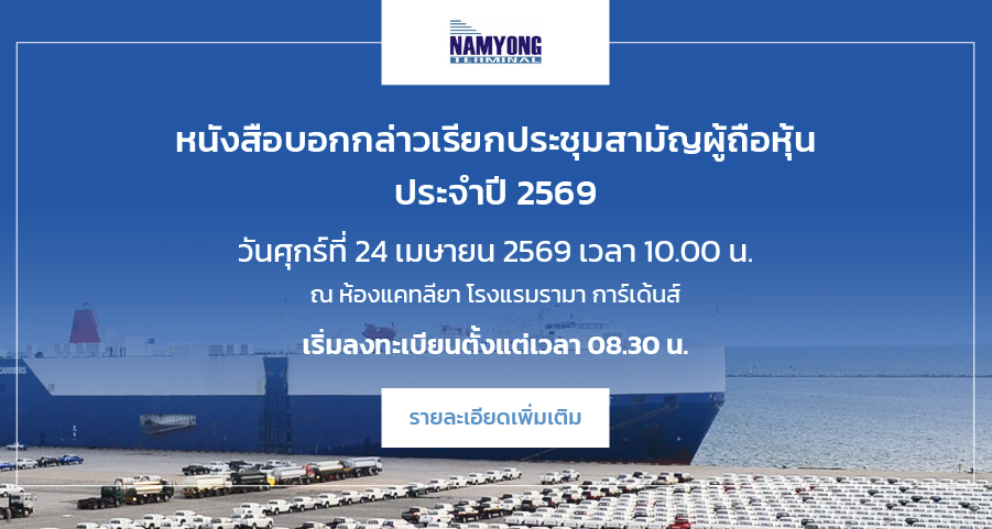 27 มี.ค. 2569การเผยแพร่และการจัดส่งหนังสือเชิญประชุมสามัญผู้ถือหุ้นประจำปี 2569 แบบ 56-1 One- Report/รายงานประจำปี 2568 ฉบับภาษาไทย และเปิดโอกาสให้ผู้ถือหุ้นส่งคำถามล่วงหน้า